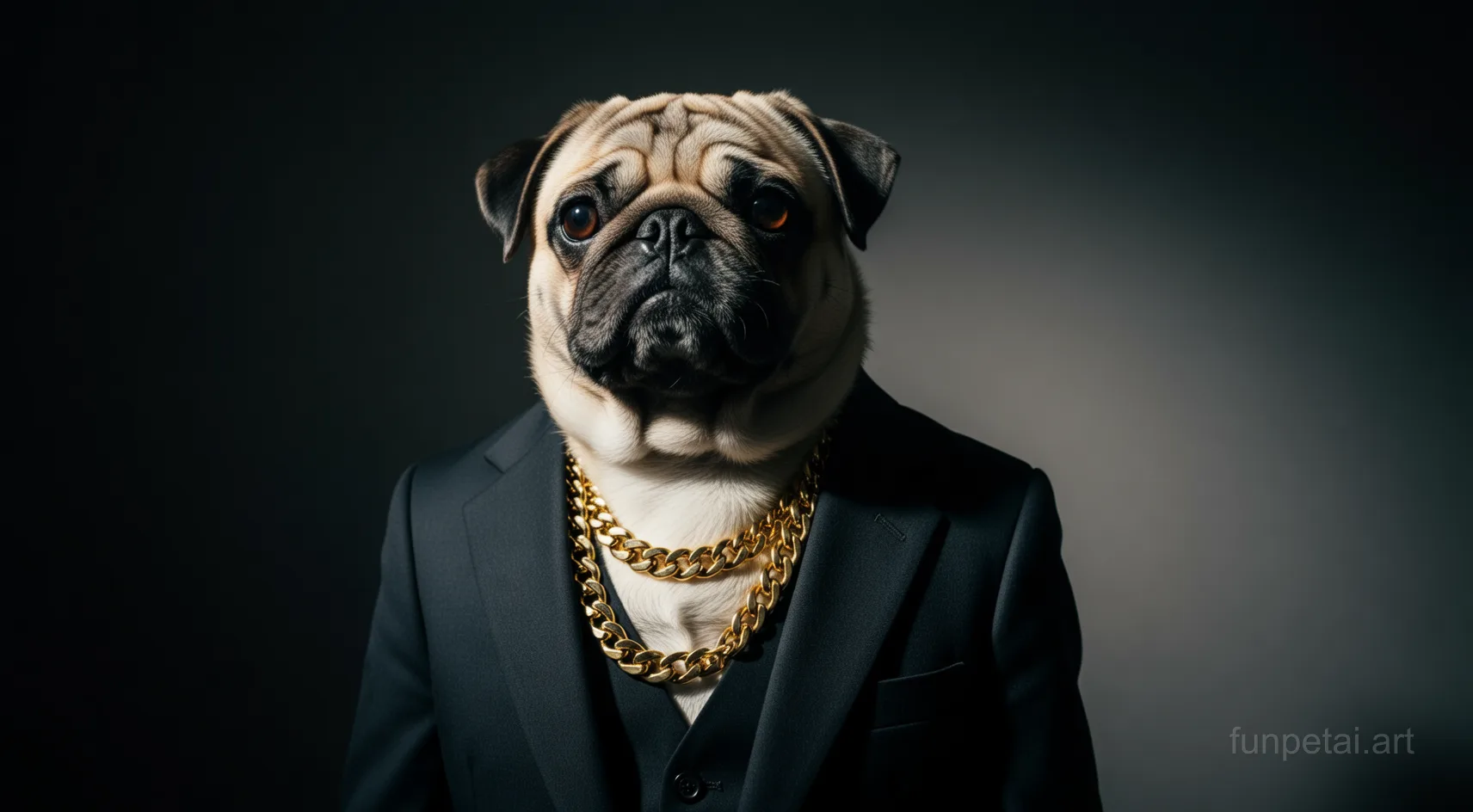 We emphasize the wrinkled face and keep the distinct muzzle sharp so the Pug profile stays true-to-life.
